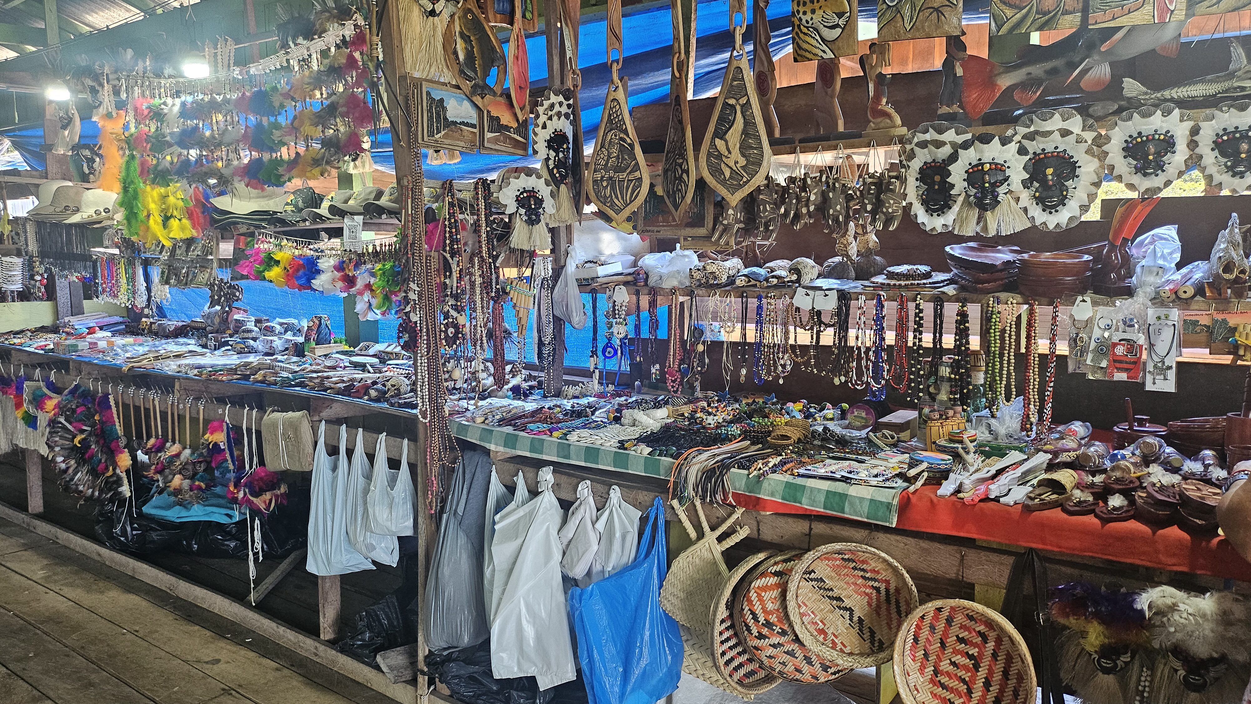 No local, os visitantes também encontram artesanato indígena e caboclo, além de produtos produzidos com insumos da floresta, valorizando a economia e os saberes tradicionais da região.