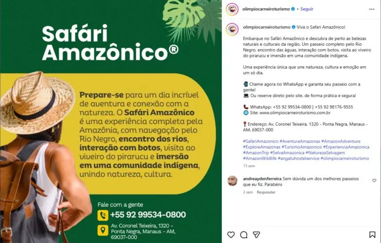 As reservas podem ser feitas diretamente pelo WhatsApp (92) 98176-9555. A expectativa é de que a ação atraia tanto moradores de Manaus quanto visitantes interessados em vivenciar a Amazônia de forma diferente neste Dia das Mães.